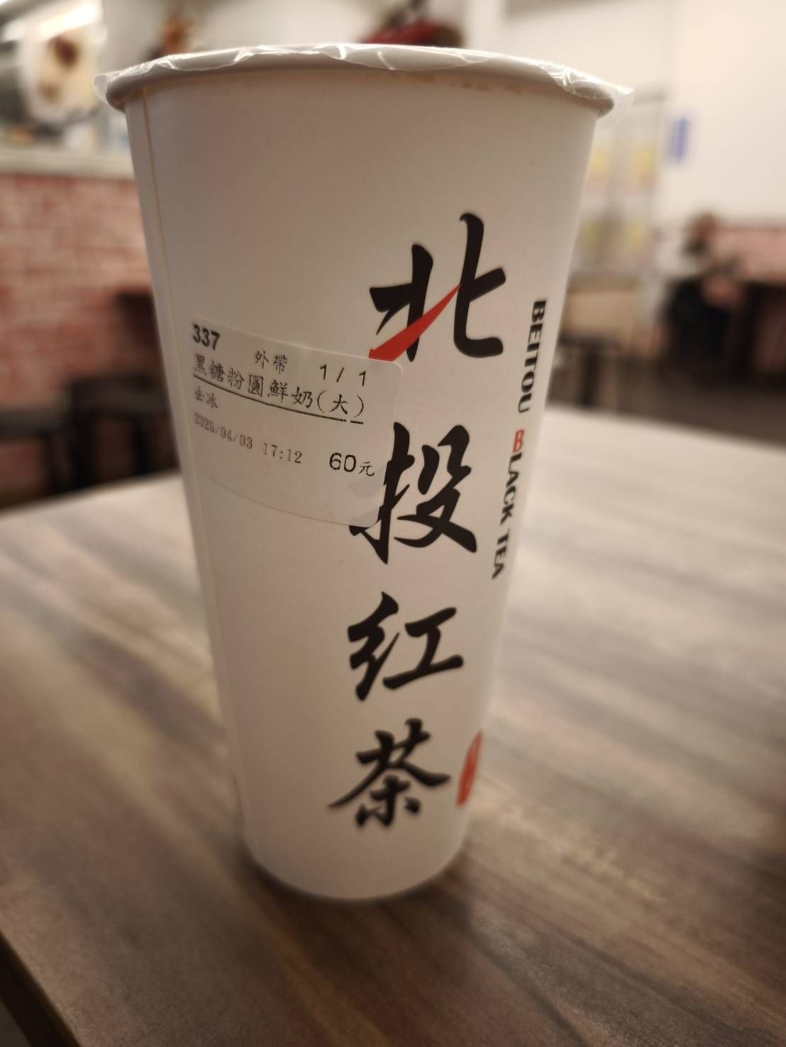 晚上看電影前,我們一起在外用餐。等上餐時,我到隔壁買了一杯珍珠鮮奶,再走進店家。