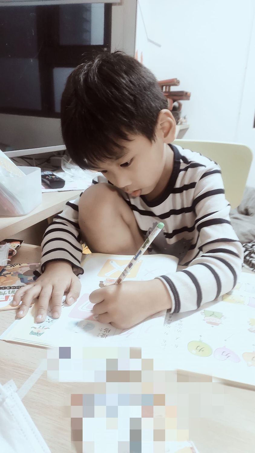 #圖為下課後第一件事就是主動拿功課出來寫的燁