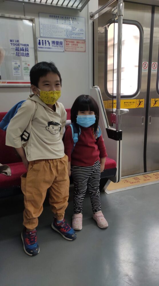 當翎結完帳後,開心地像飛上天似的跳到我身旁,向我展示她的糖果!我戴著口罩但冷冷地看著翎,翎知道我在生氣了,雖然戴著口罩,也能看出翎收起了笑容。